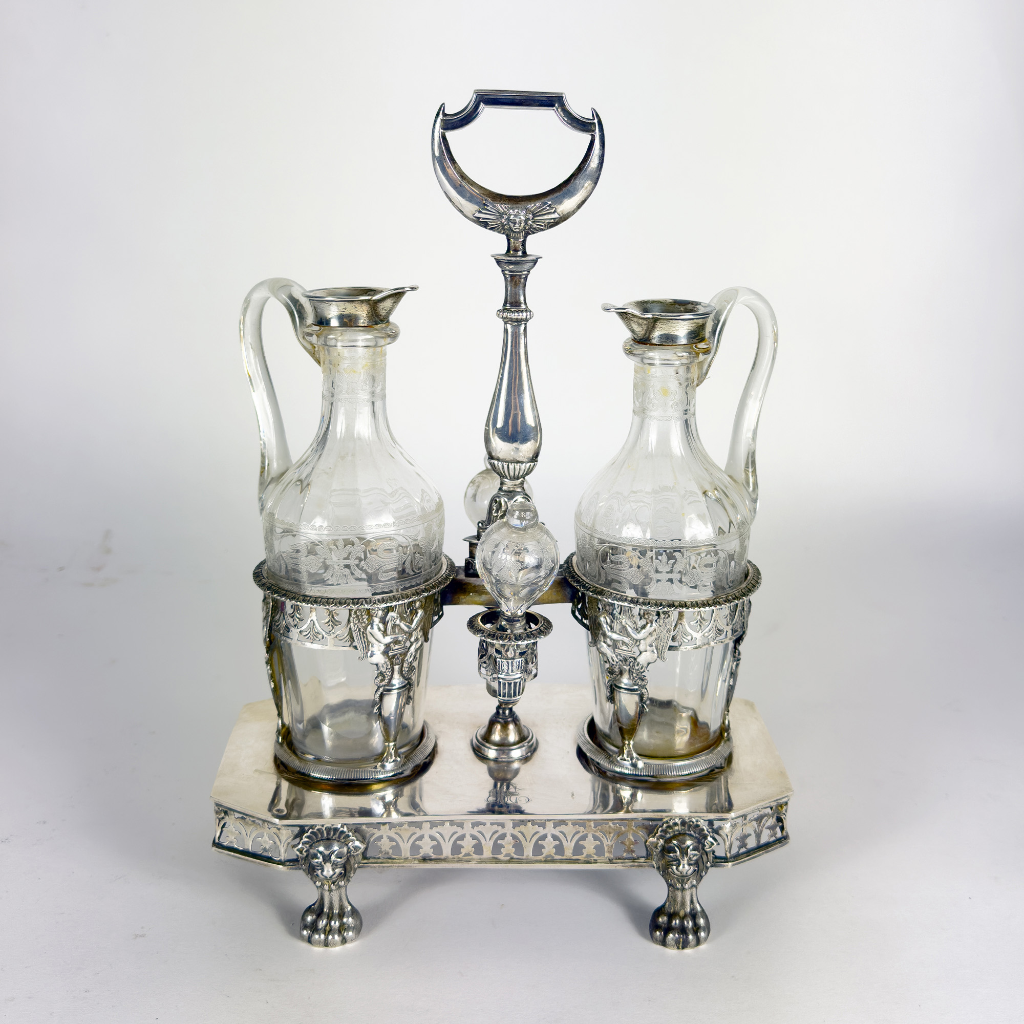 Oliera in argento, Parigi, Jean Pierre Bibron (1798-1809), due ampolle in...