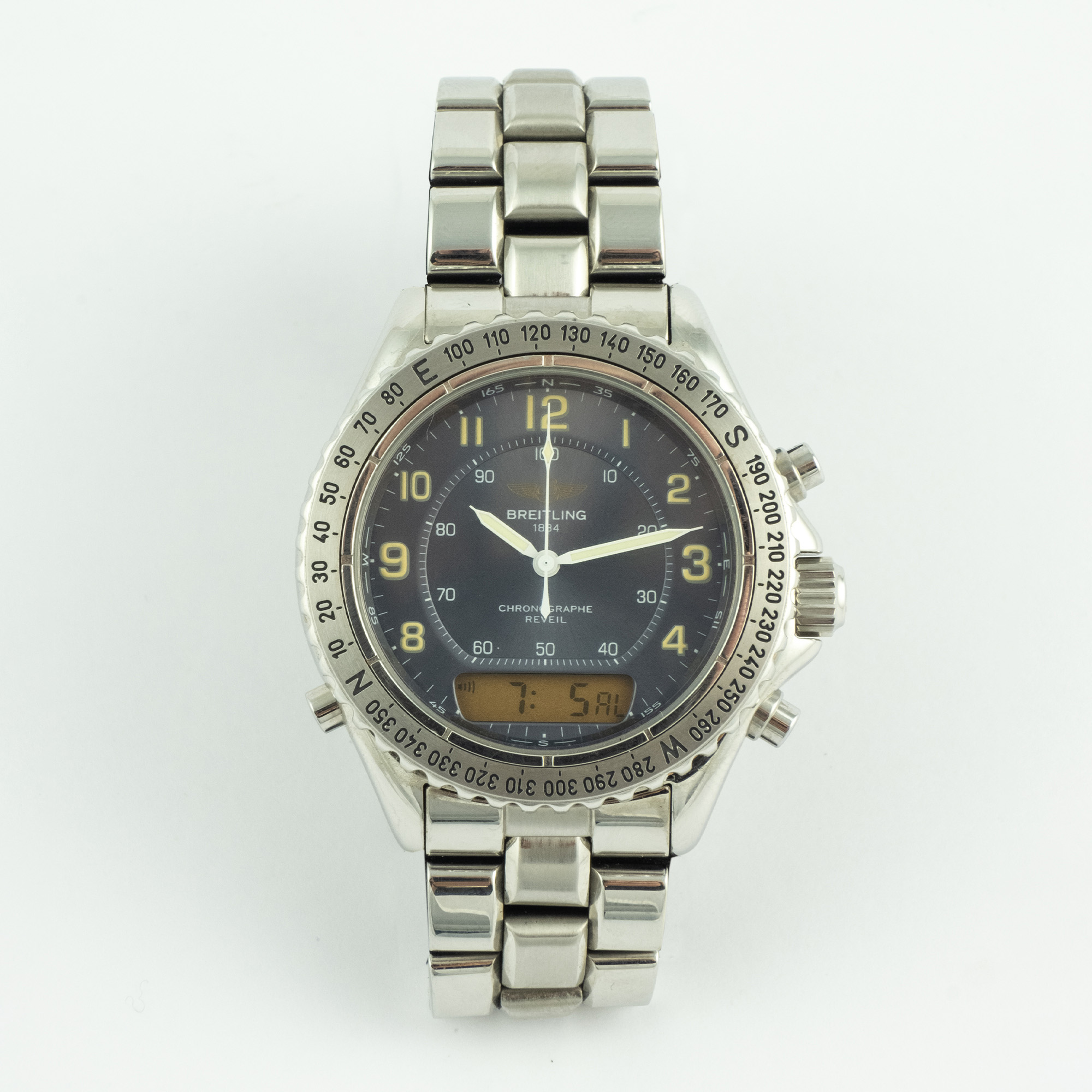 Orologio da polso Breitling Intruder, in acciaio. Cassa da mm. 40 con quadrante grigio; movimento al quarzo con display cifrato; scatola originale e garanzia