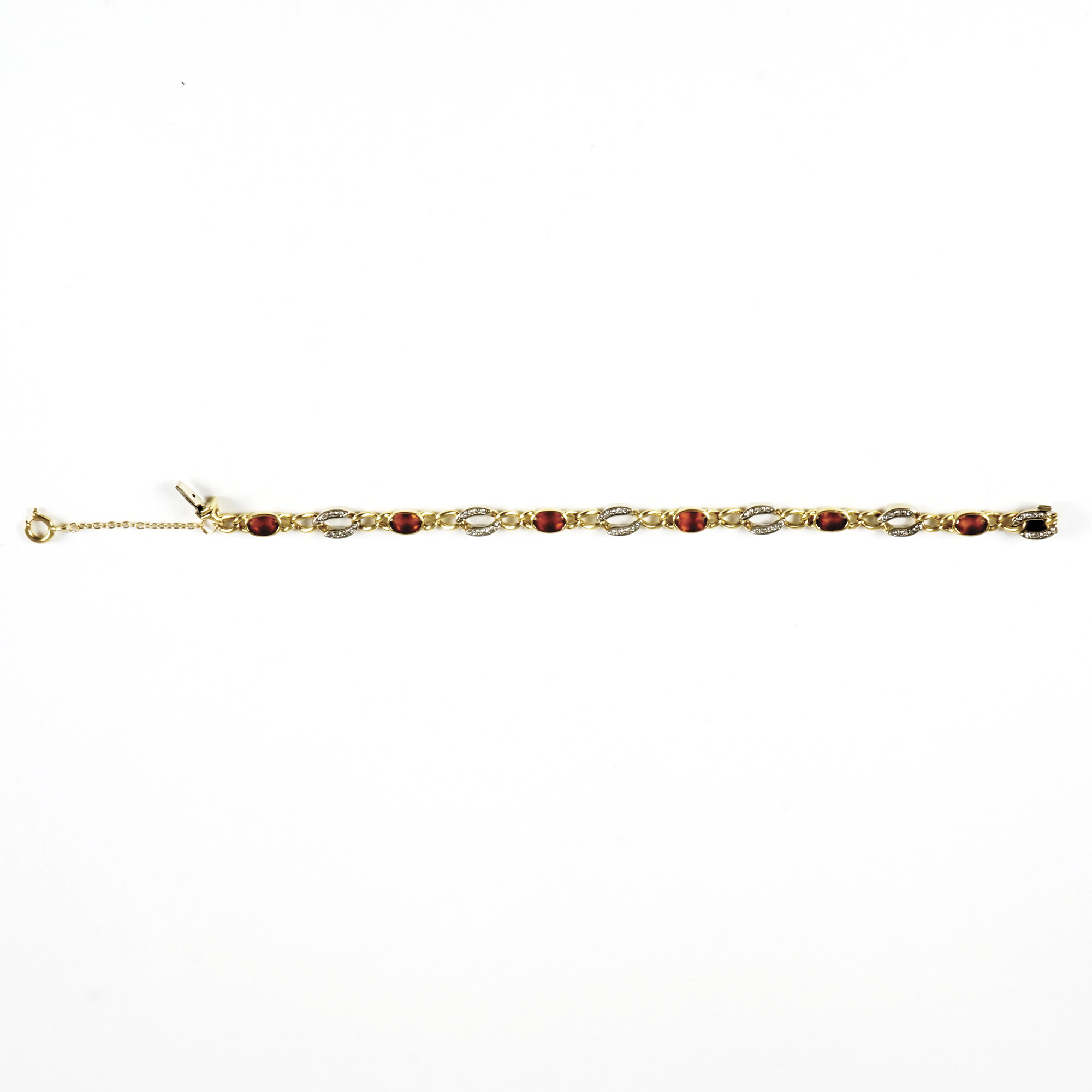 Bracciale a maglie in oro giallo 18kt., decorato da pavé di diamanti alternati a quarzi cabochon, l. cm. 17,5, peso gr. 18