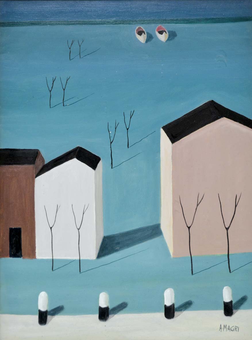 MAGRI ANTENORE Ferrara 1907 - 1978 Paese di pescatori 1972 olio su tela 70x50...