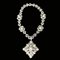 Importante collana in oro bianco e giallo 18kt., con perle barocche e diamanti per 15,00 ct. circa, finemente cesellata a motivi cuoriformi, qualificata da un grande pendente a losanga in oro 14kt. rimovibile e utilizzabile a spilla, l. cm. 44; il pendente cm. 7,5x7,5