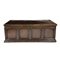 Cassina di noce, XVII secolo, con piano apribile; fronte scandito da quattro formelle rettangolari; base lievemente aggettante, cm. 37,5x115x39,5 circa
