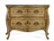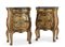 Cassettone e coppia di comodini, in legno laccato avorio di linea mossa con profili dorati e fiori policromi, la commode: cm. 98x134x52; i comodini: cm. 84x56x36 (qualche mancanza alla laccatura e alla doratura)