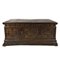 Cassone di noce, XVII secolo, piano apribile e fronte scandito da tre...