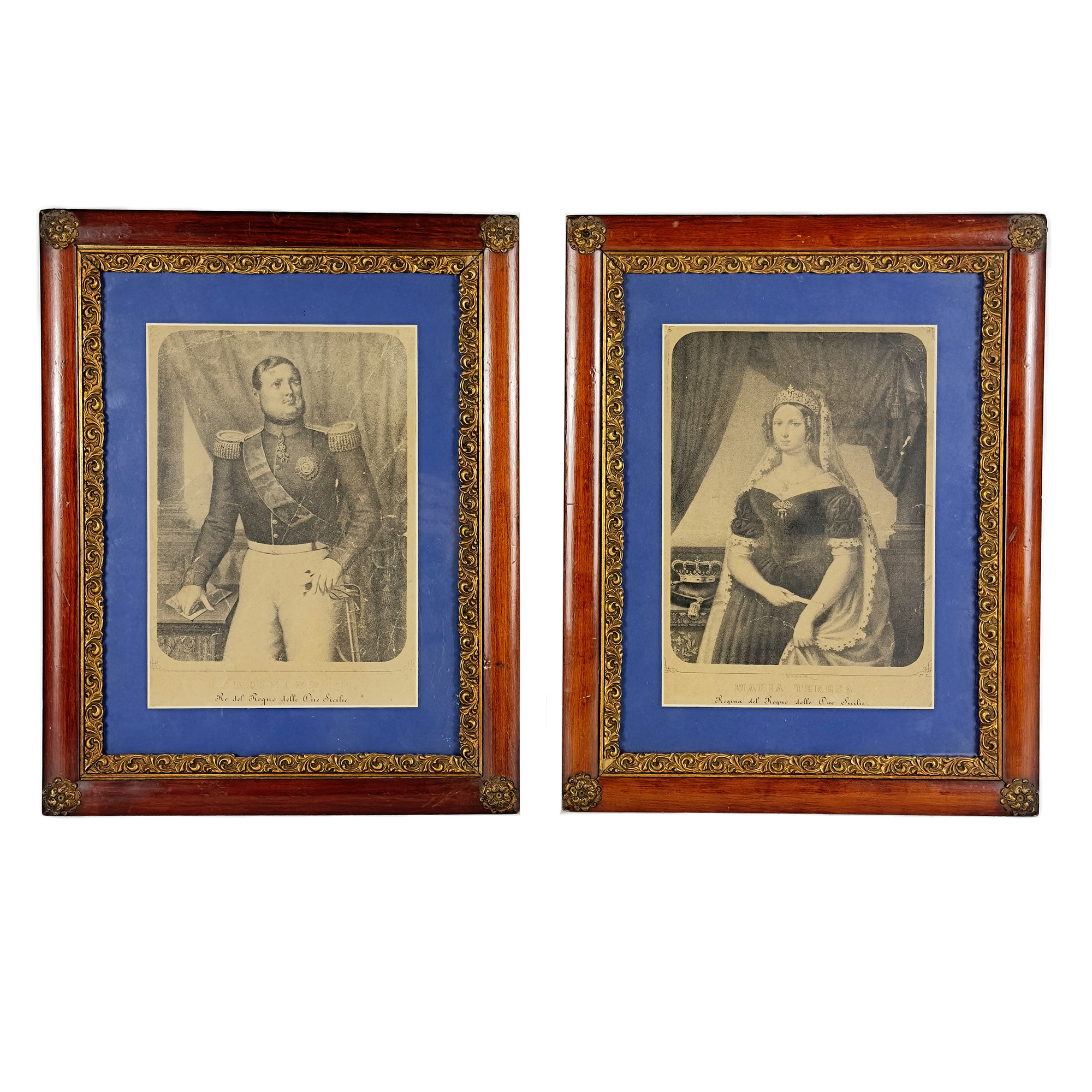 Coppia di litografie, XIX secolo, raffiguranti rispettivamente Ferdinando II Re del Regno delle Due Sicilie e Maria Teresa Regina del Regno delle Due Sicilie, la luce cm. 34x24,5