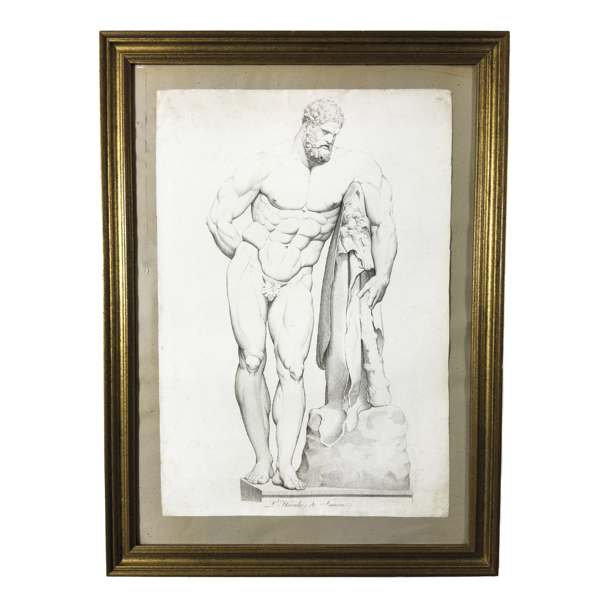Lotto 229 | Incisione raffigurante l'Ercole Farnese, XIX secolo, il foglio cm. 53x35,5