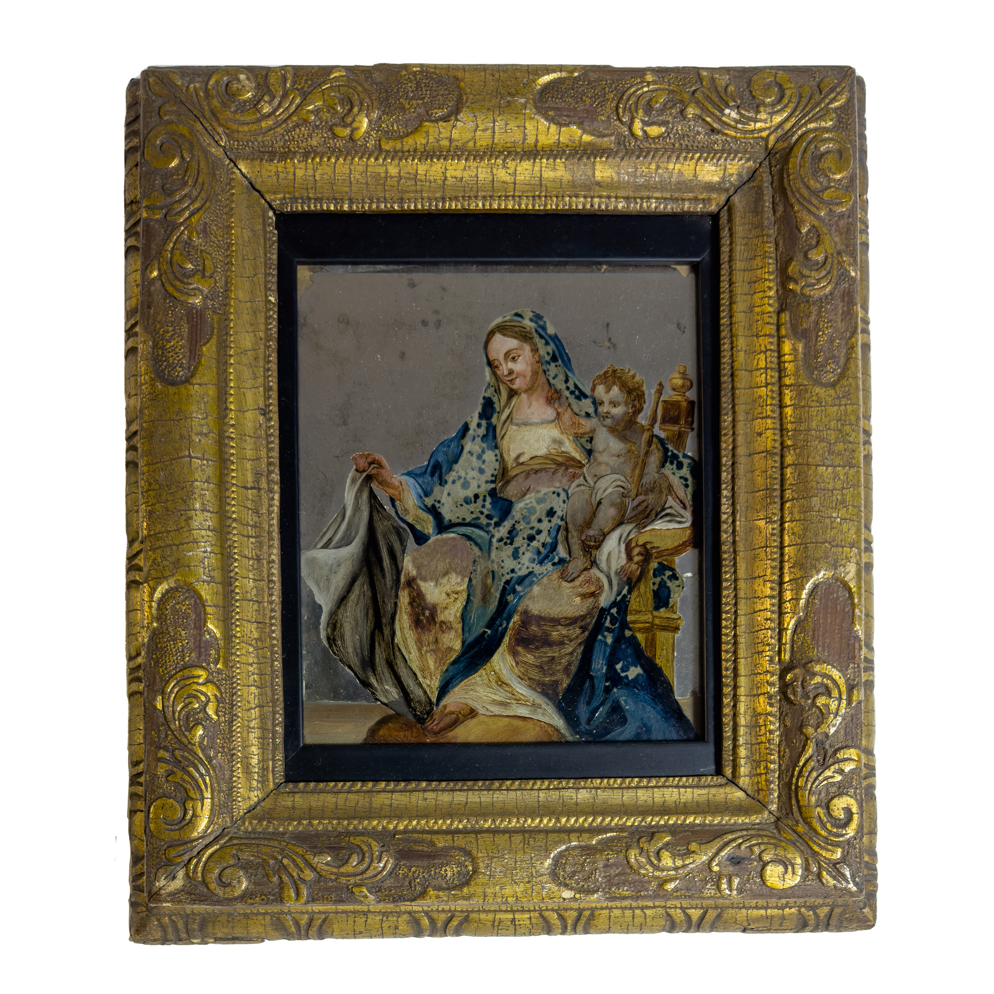Pittore veneziano del XVIII secolo, Madonna in trono col Bambino olio su...
