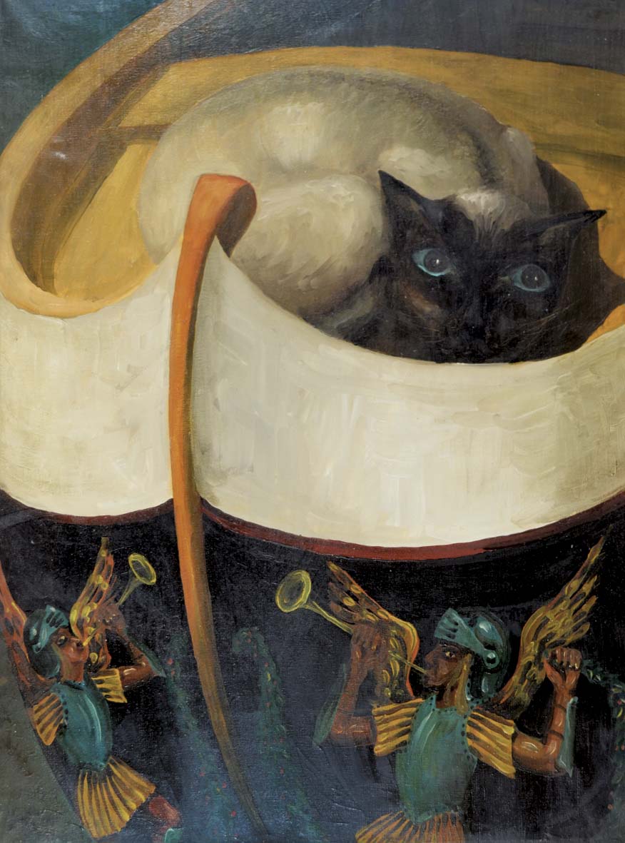 PREGNOLATO WALTER Chioggia 1931 Il bragozzo ed il gatto 1965 olio su tela...