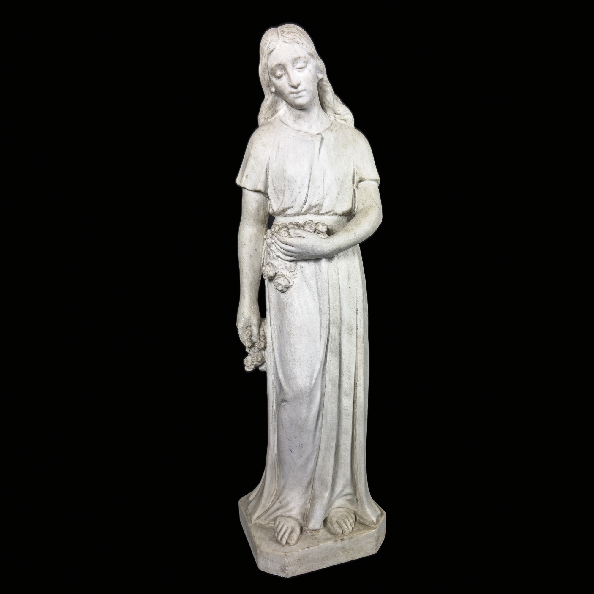 Allegoria della Primavera in marmo bianco, inizi del XIX secolo, su base ottagonale, complessivamente h. cm. 80