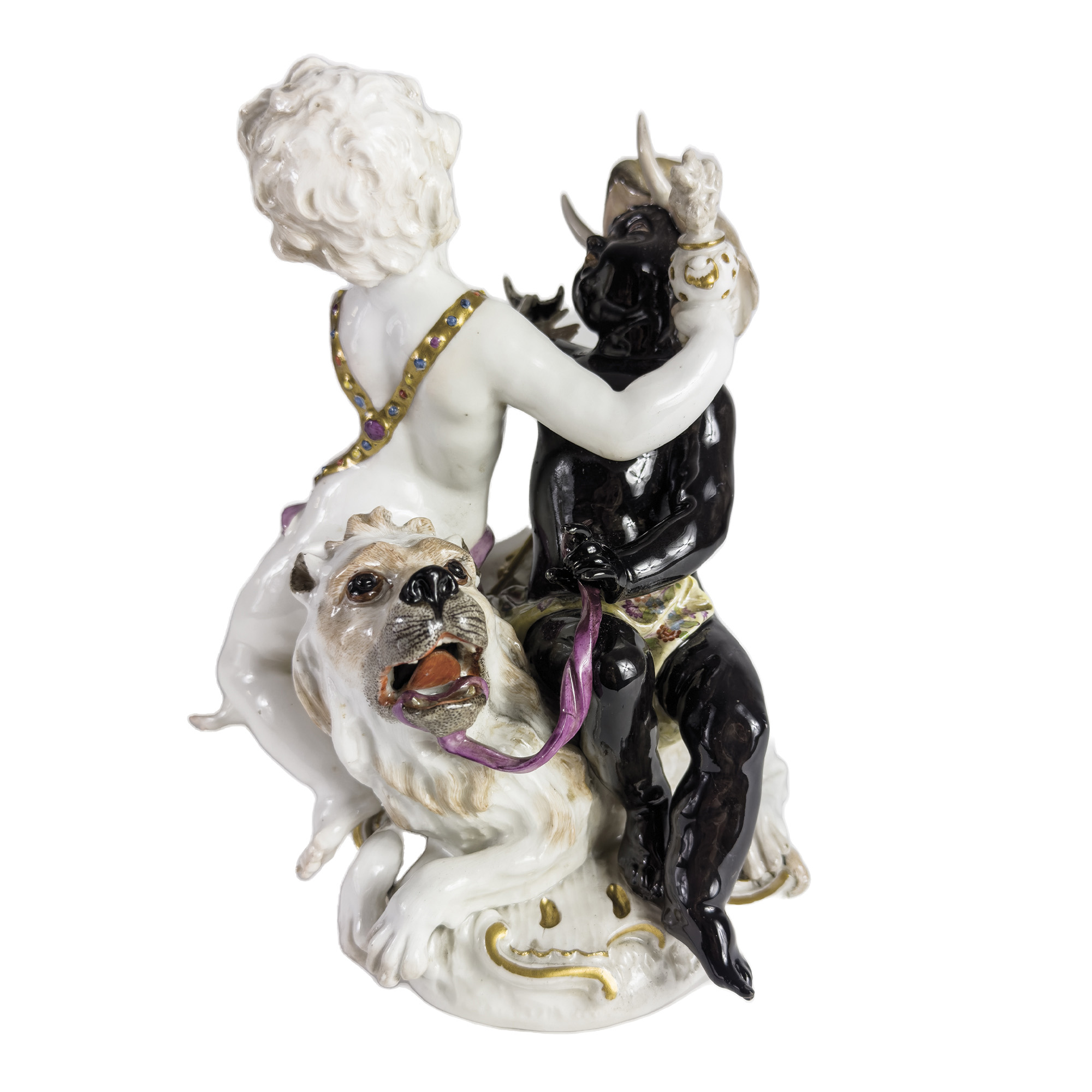 Gruppo in porcellana bianca e policroma raffigurante l'Africa, Meissen, circa...