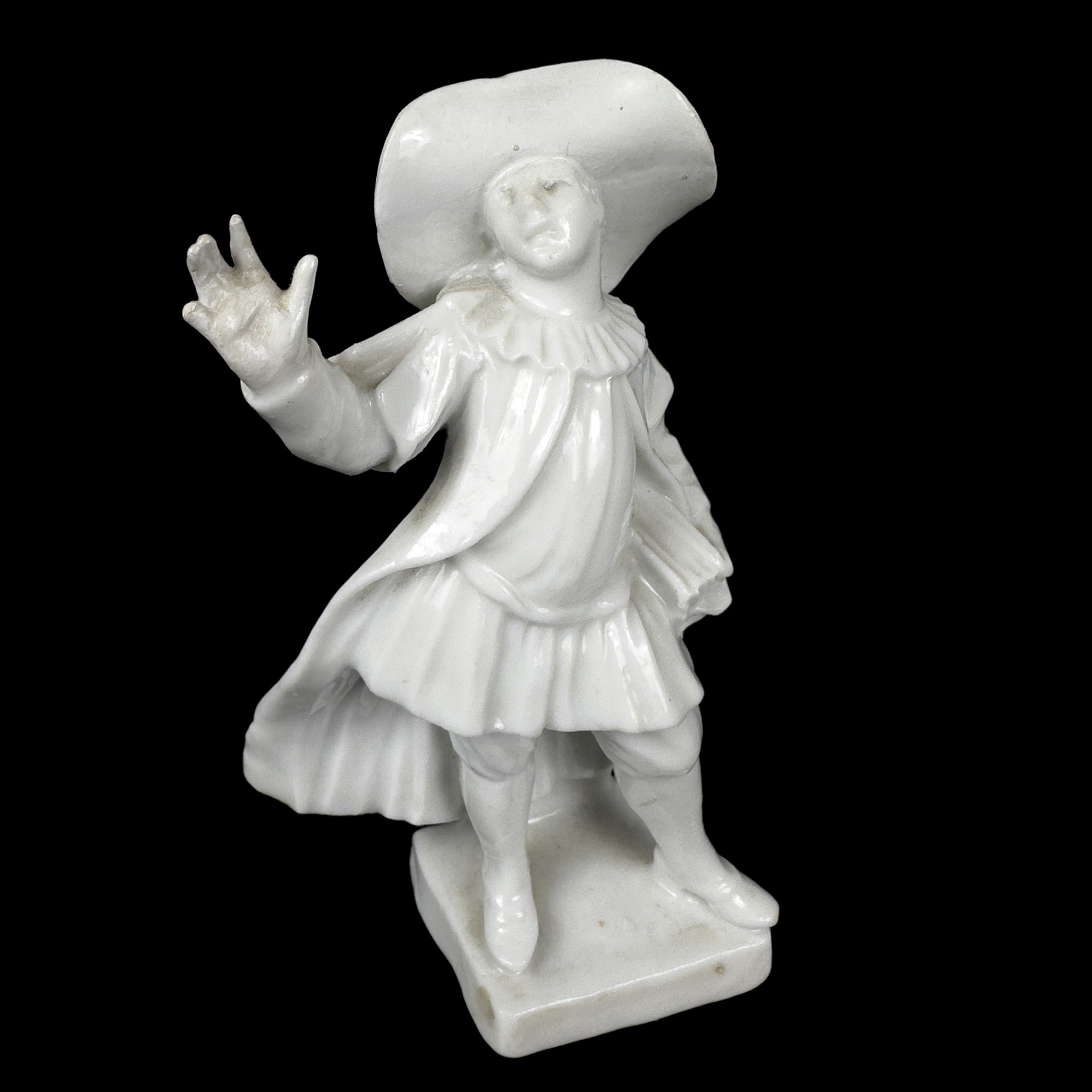 Scultura in porcellana bianca, Doccia, Manifattura Ginori, XVIII secolo, raffigurante Balanzone, h. cm. 10 (difetti)