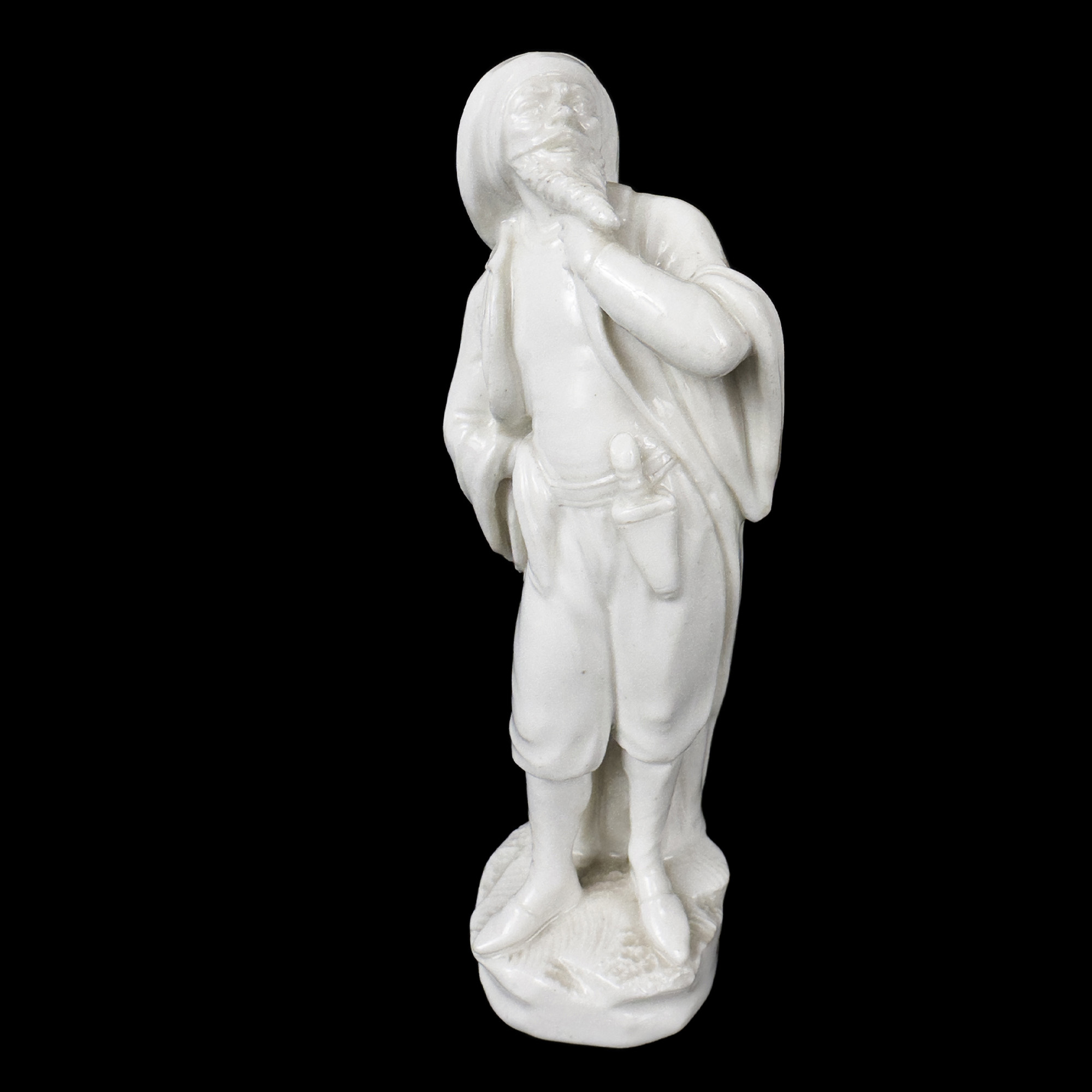Scultura in porcellana bianca, Napoli, fine del XVIII-inizi del XIX secolo, raffigurante Pantalone, h. cm. 17,5, marca assente