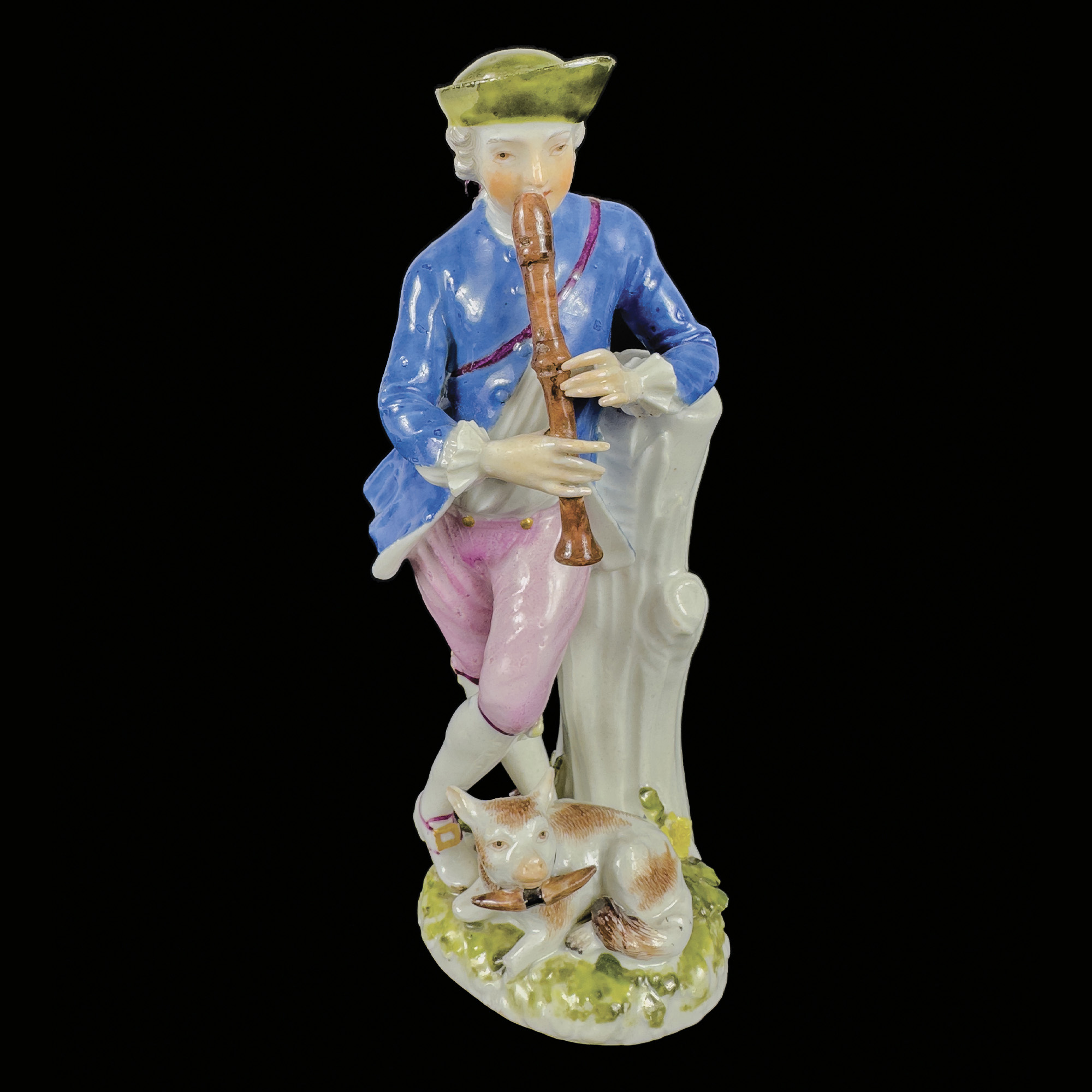 Scultura in porcellana, Meissen, circa 1750, raffigurante un pastorello con...
