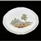 Vassoio in porcellana, Berlino, 1770-'80, con cavetto ovale dipinto in policromia su fondo bianco a raffigurare un paesaggio fluviale alberato con edifici e cavalieri, marca scettro in blu sotto smalto con numerale 23 incusso, cm. 32,5x25,5