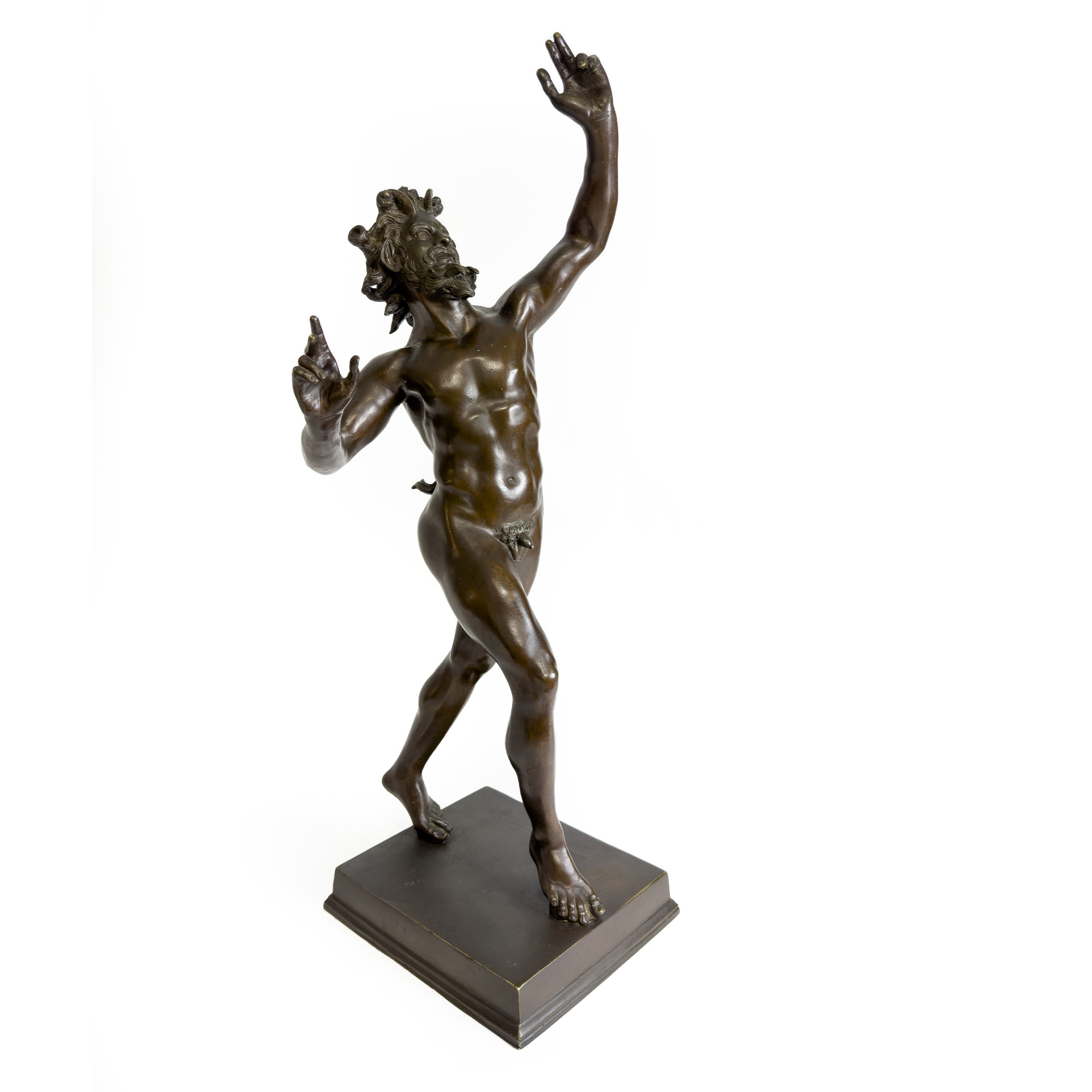 Fauno Danzante in bronzo patinato, Napoli, inizi del XX secolo, dall'originale al Museo Archeologico di Napoli, h. cm. 83