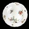Piatto in porcellana kakiemon, Meissen, 1735-'40, dipinto in rosso ferro, blu e verde su fondo bianco a raffigurare un animale fantastico e un airone fra vegetazione fiorita; tesa lavorata a canestro ornata da composizioni floreali recise alternate a farfalle, marca spade incrociate in blu sotto smalto, d. cm. 25,5