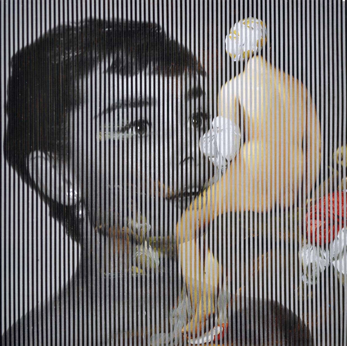 MALIPIERO Brescia 1934 Osmosi - Audrey Hepburn Ingres 2012 tecnica mista e collage su tavola 40x40 firma data e titolo al retro autentica dell'Autore su foto