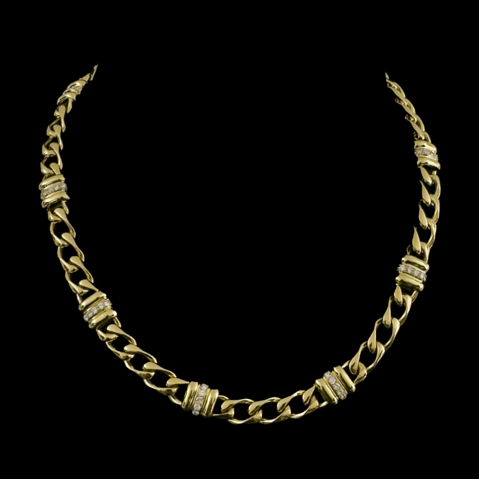 Collana in oro 18kt. con maglie a catena e diamanti taglio brillante per ct. 2,50 circa, l. cm. 43, peso gr. 92