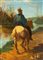 Scuola italiana seconda metà del XIX secolo - A cavallo lungo il fiume