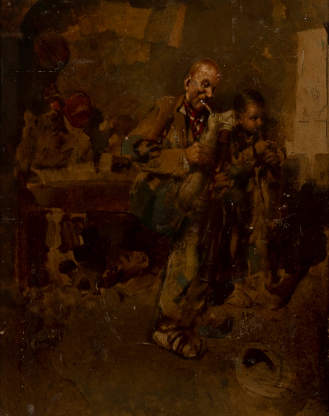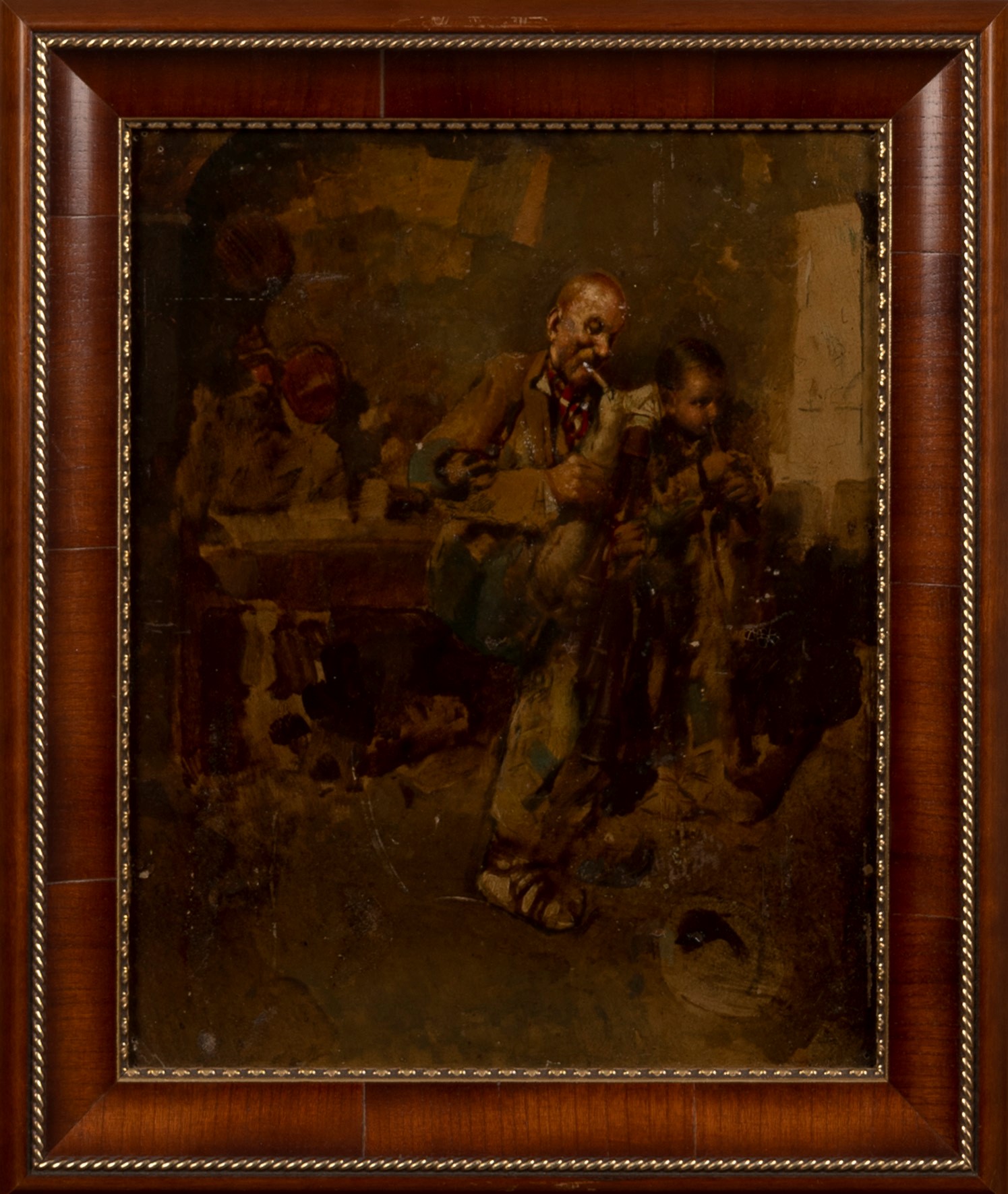 Tito Pellicciotti (Barisciano 1872-L'Aquila 1943) - Zampognari all’osteria