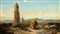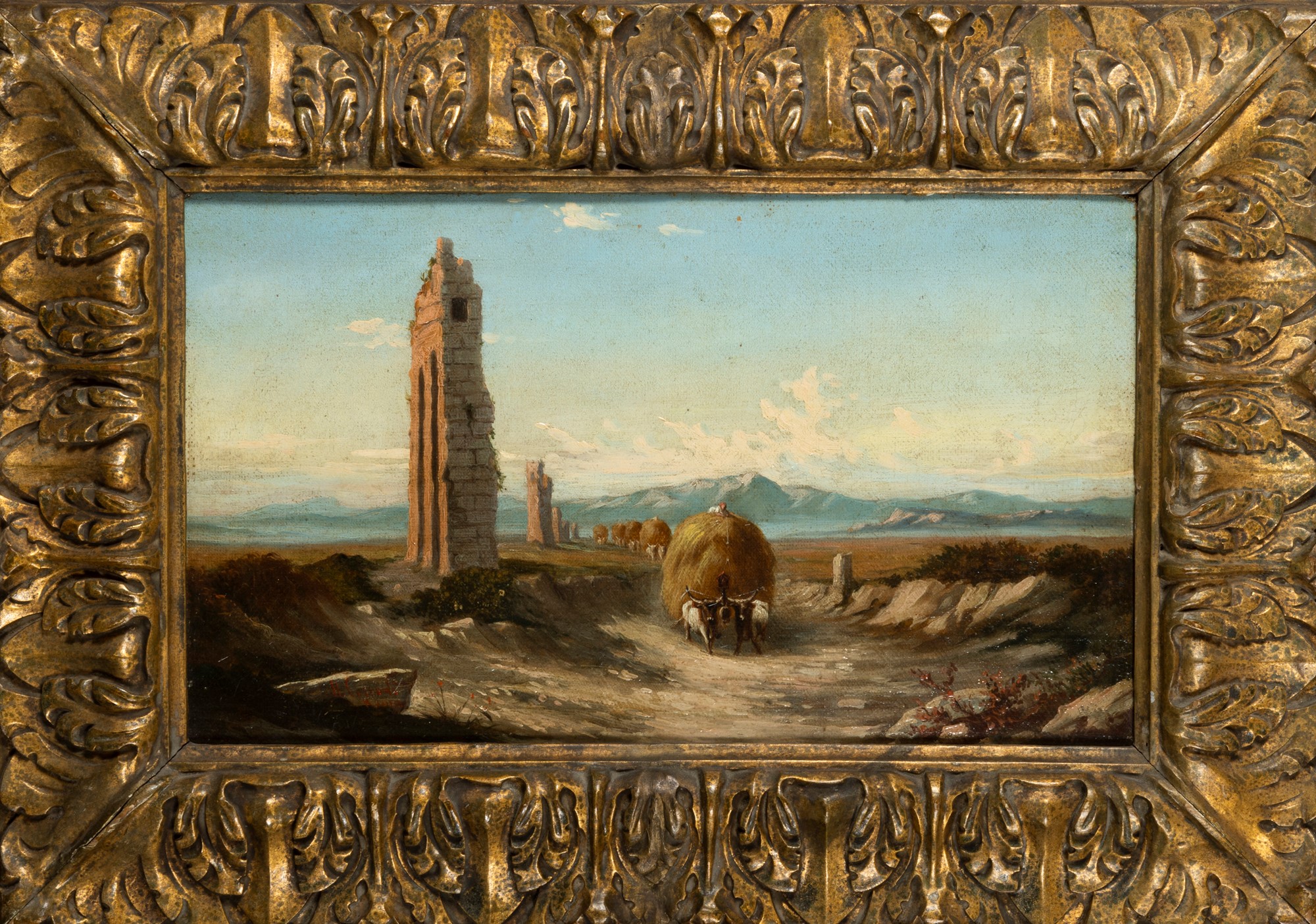 Hermann David Salomon Corrodi (Frascati 1844-Roma 1905) - Carri di fieno lungo l'acquedotto nella Campagna romana