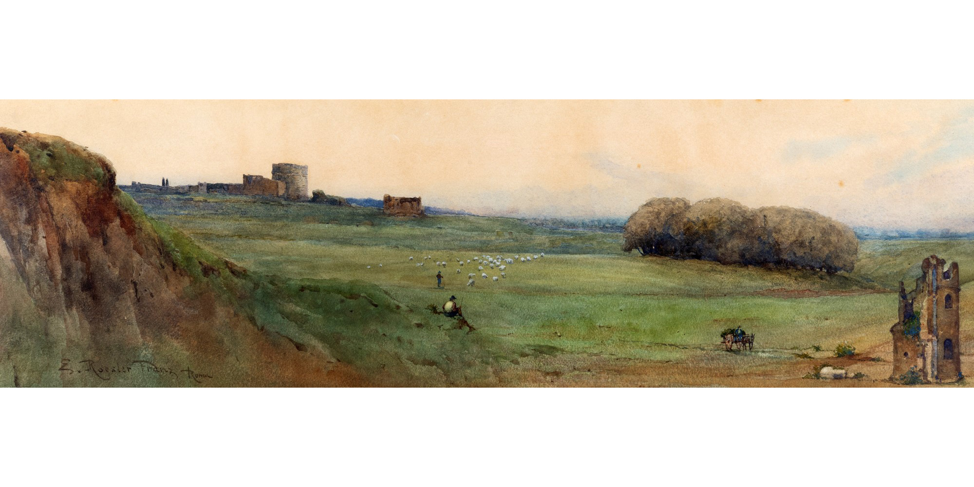 Lotto 89 | Attribuito a Ettore Roesler Franz (Roma 1845-1907) - Scorcio della via Appia antica
