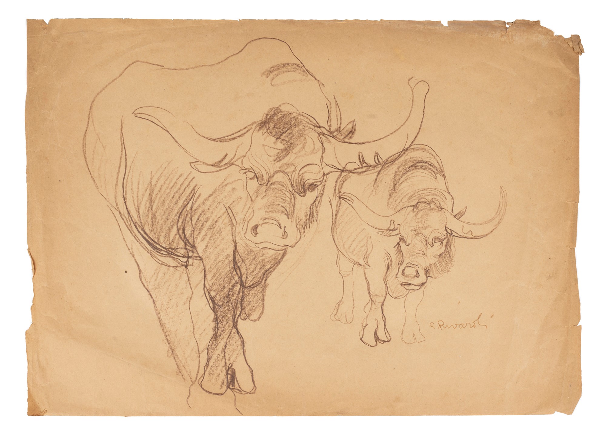 Giuseppe Rivaroli (Cremona 1885-1943) - Coppia di buoi