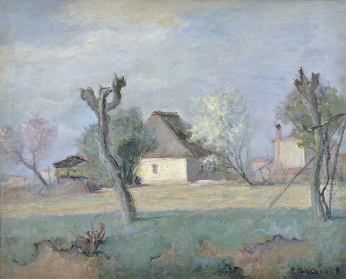 CARRARO MARIO Mestre 1896 - 1978 Casoni 1938 olio su tela 58x72 firma e data in basso a destra
