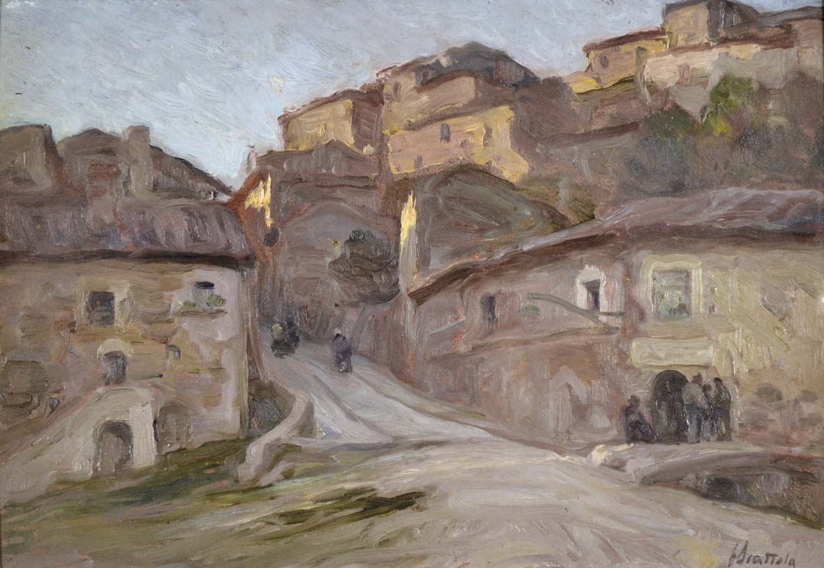 SCATTOLA FERRUCCIO Venezia 1873 - Roma 1950 Borgo olio su cartone 24x33,5...