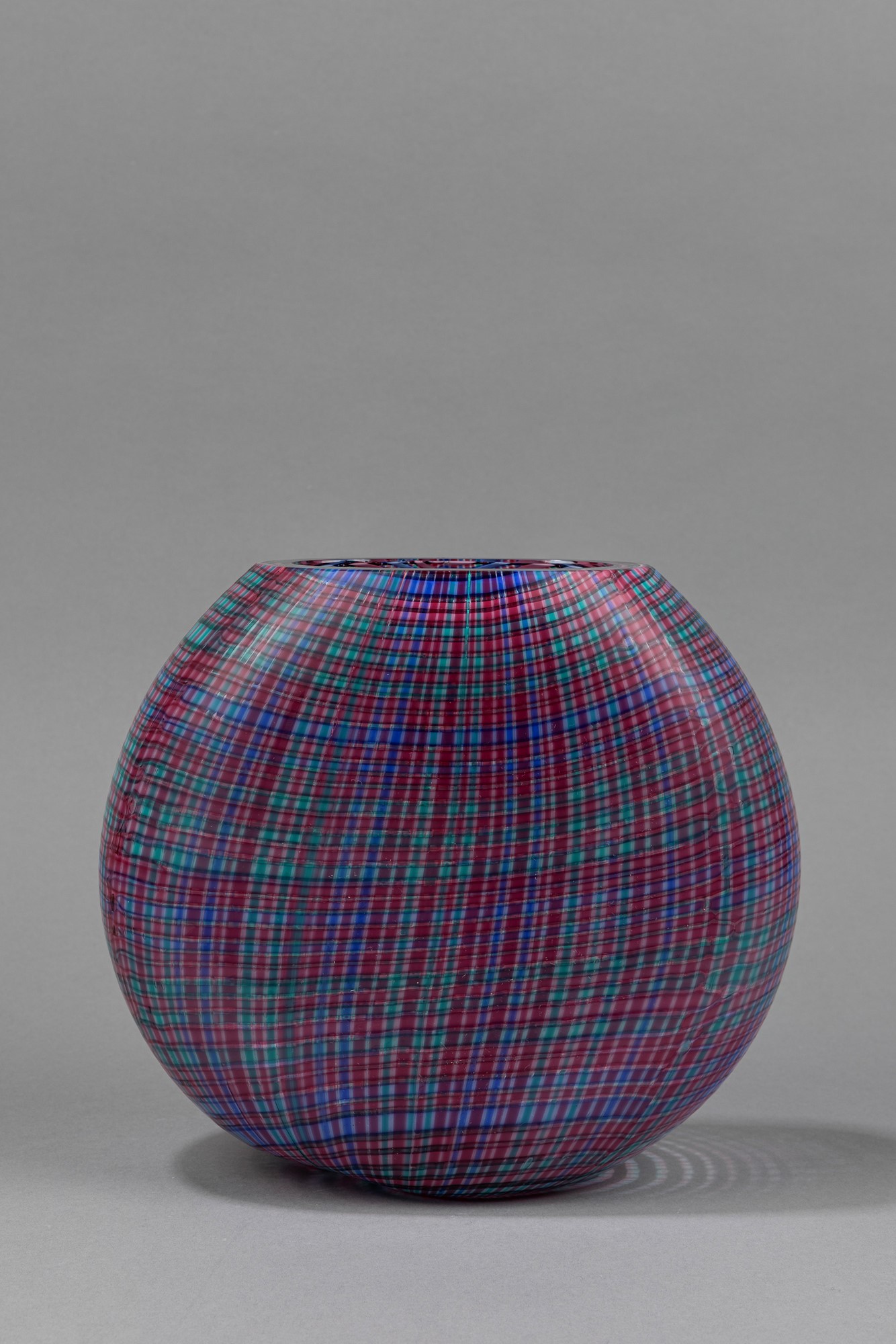 a sezione ovale della serie Scozzesi in vetro soffiato con decoro di canne multicolori.