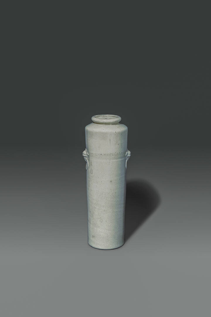 Vaso in porcellana craquelè blanc de chine con mascheroni, Cina, dinastia Qing, epoca Kangxi (1662-1722)