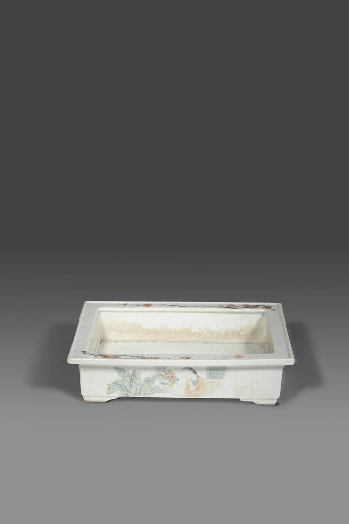 Giardiniera in porcellana Famiglia Rosa con decori policromi, personaggio e iscrizioni, Cina, dinastia Qing XIX sec