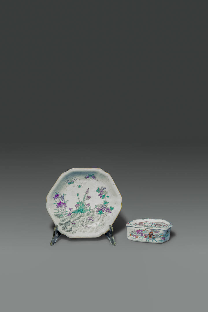 Alzata e incensiere in porcellana Famiglia Rosa, Cina, dinastia Qing, XIX Sec.