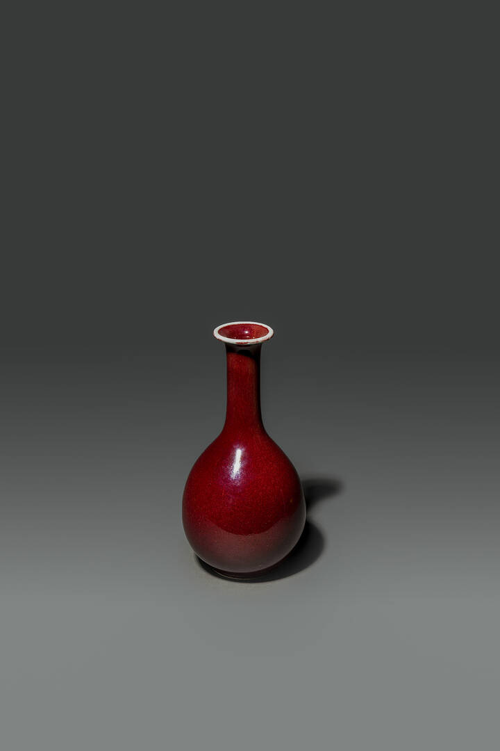 Vaso in porcellana sangue di bue con collo allungato, Cina, dinastia Qing, XIX sec