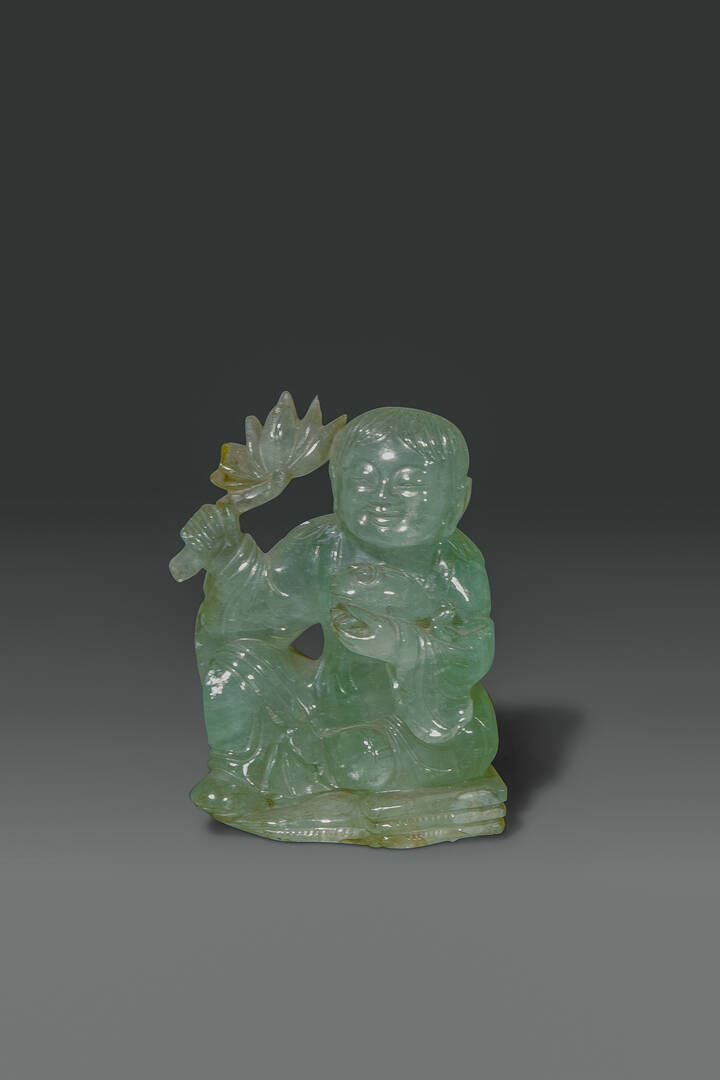 Scultura di ragazzo seduto in giada, Cina, dinastia Qing, XIX sec