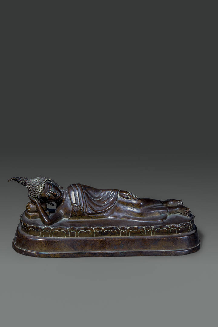Figura in bronzo di Buddha in Parinirava, Thailandia Ayutthaya, XVI sec.
