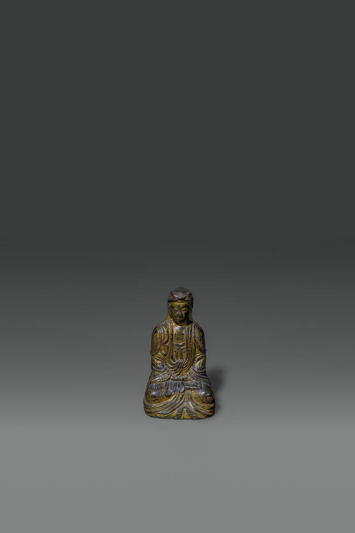 Piccolo buddha in bronzo dorato seduto nella posizione del loto, Cina, dinastia Qing, XIX sec