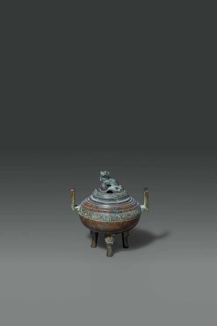 Piccolo censer in bronzo con coperchio, sormontato da Cane di Pho, Cina, dinastia Qing, XIX sec