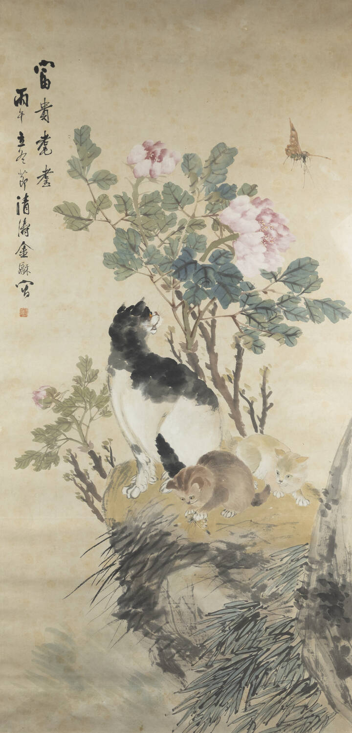 Dipinto su carta raffiguranti gatti con iscrizioni, Cina, Repubblica, XX sec