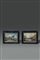 Coppia di quadretti, olio su tela finemente dipinti con scene di pesca, Cina, dinastia Qing, XVIII sec.