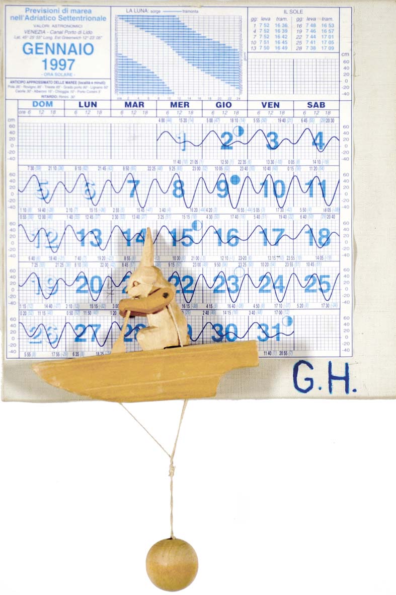 PATTERSON BEN Pittsburgh 1934 Previsioni di marea 1997 tecnica mista collage e oggetto in legno su tela 25x25 firma e data al retro