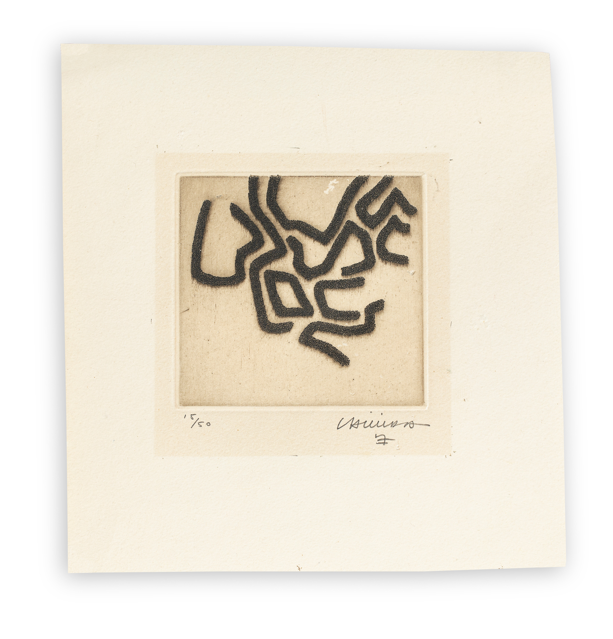 Firma e numerazione (Esemplare 15/50) a matita al fronte
