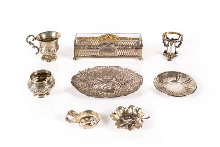 LOTTO DI OTTO OGGETTI IN ARGENTO