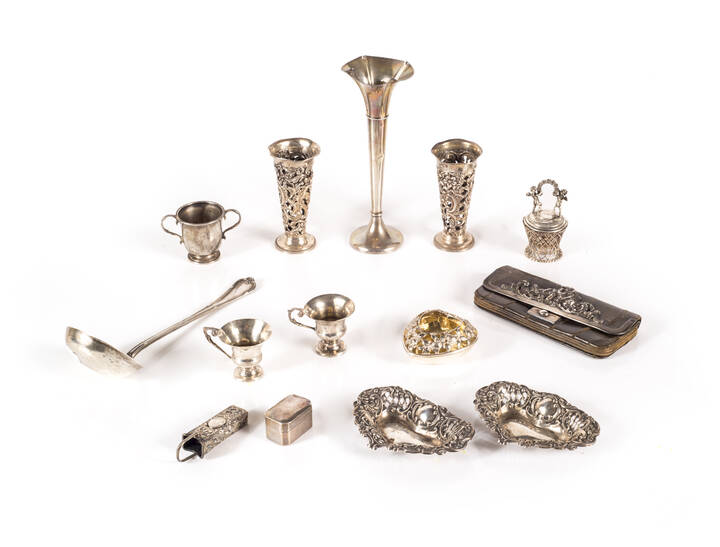 LOTTO DI QUATTORDICI OGGETTI IN ARGENTO