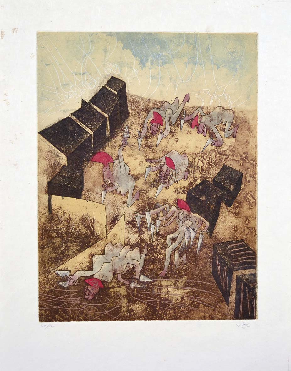 MATTA ECHAUREN ROBERTO SEBASTIAN Santiago del Cile 1911 - Roma 2002 senza titolo acquaforte acquatinta su carta japon es. 40/100 49,5x37,5 (lastra) - 66x50 (foglio) firma in basso a destra tiratura in basso a sinistra