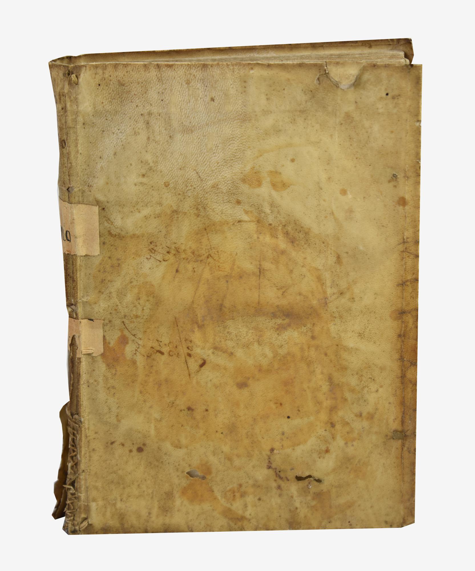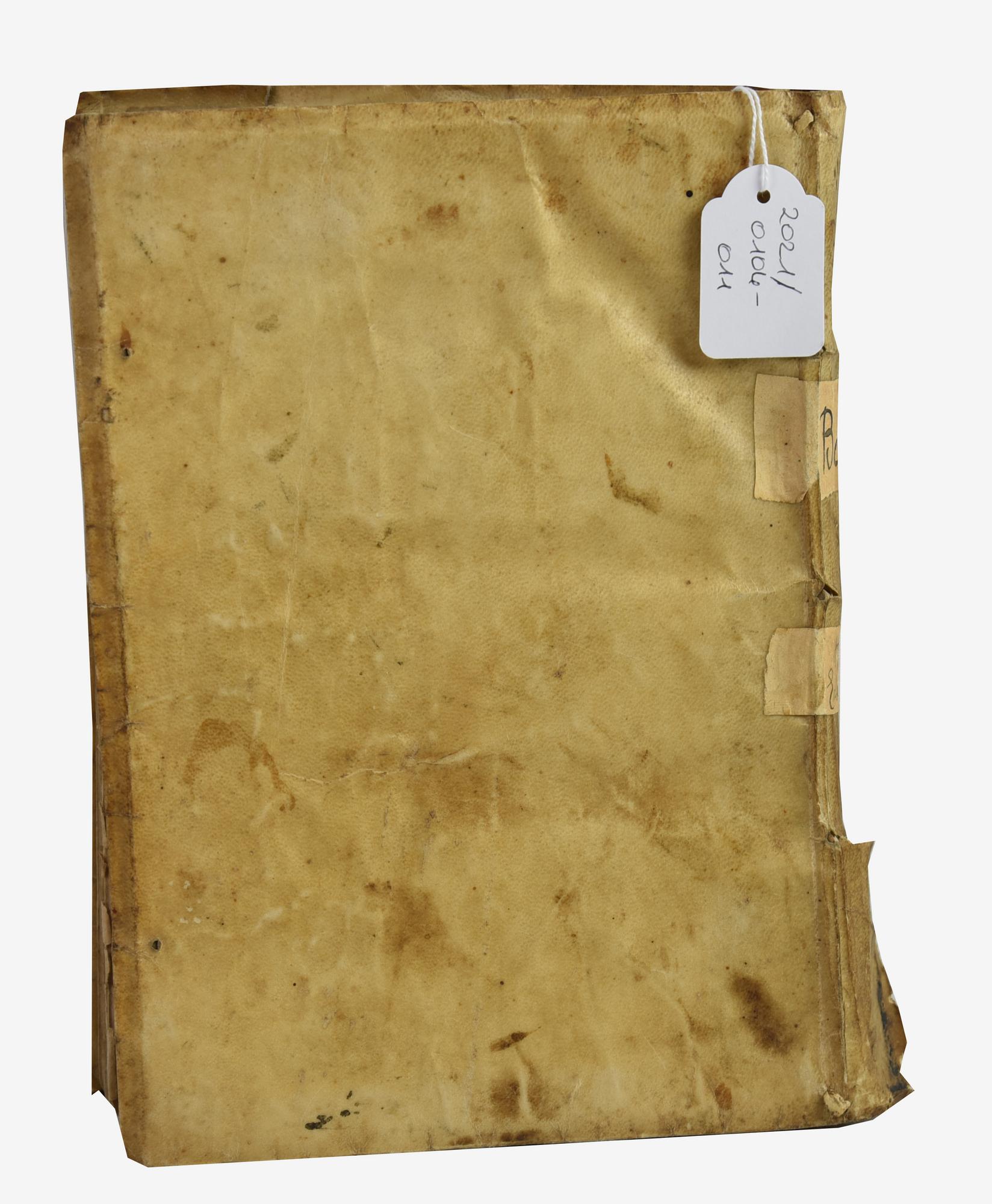 Copertina in pergamena. Iscritto con annotazioni bordo pagina e pagine finali.