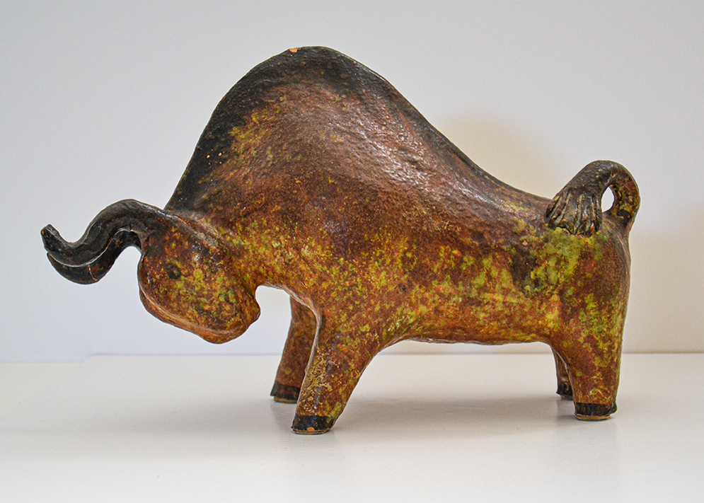 Scultura in terracotta raffigurante un bisonte, per colori e forme si presume possa appartenere al ceramista tedesco Kurt Tschörner prodotto per l'azienda Otto Keramik negli anni'70.