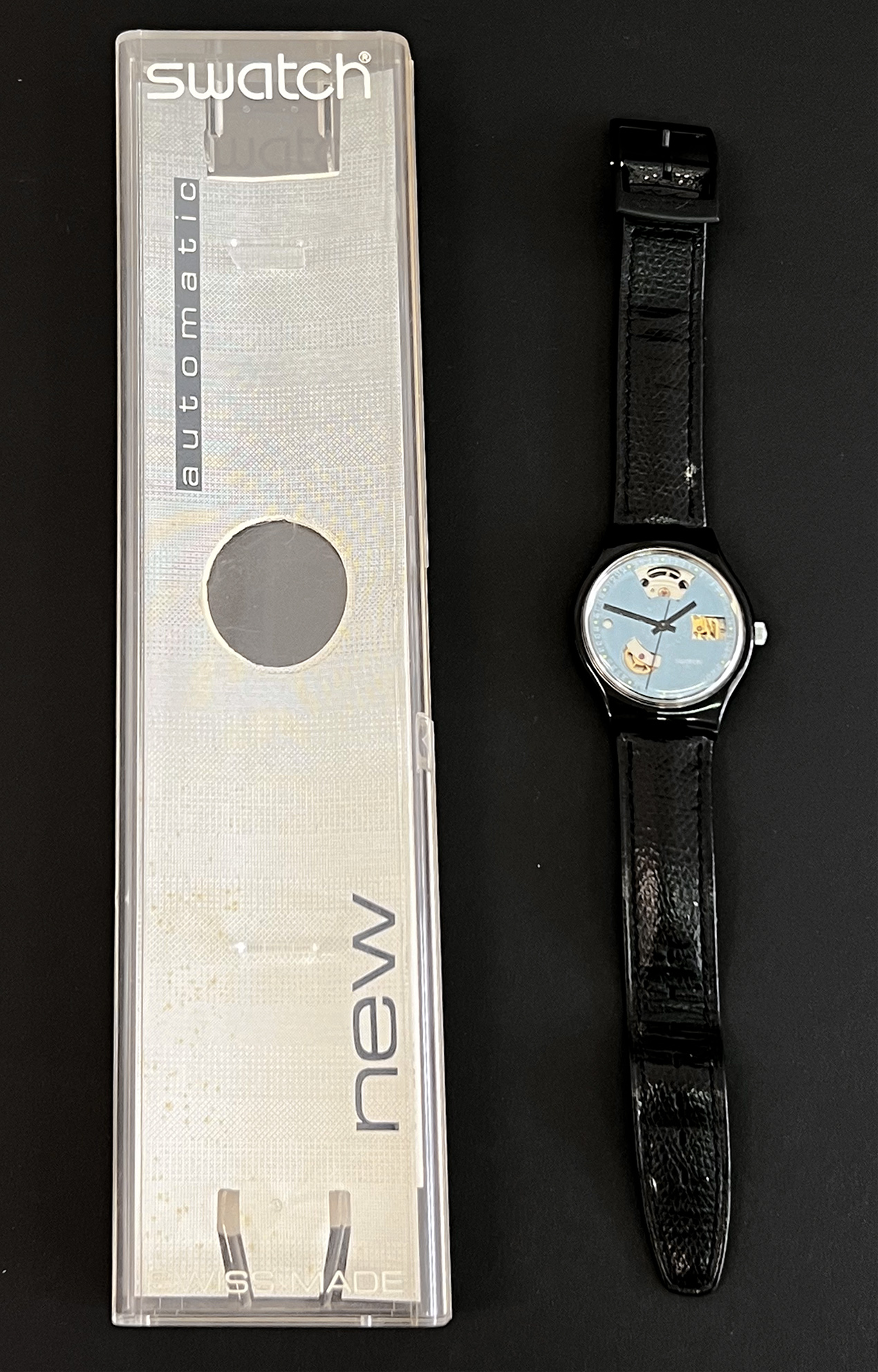 Uno tra i primi orologi meccanici automatici Swatch, dotato di un calibro Eta 2840 con 23 rubini.
