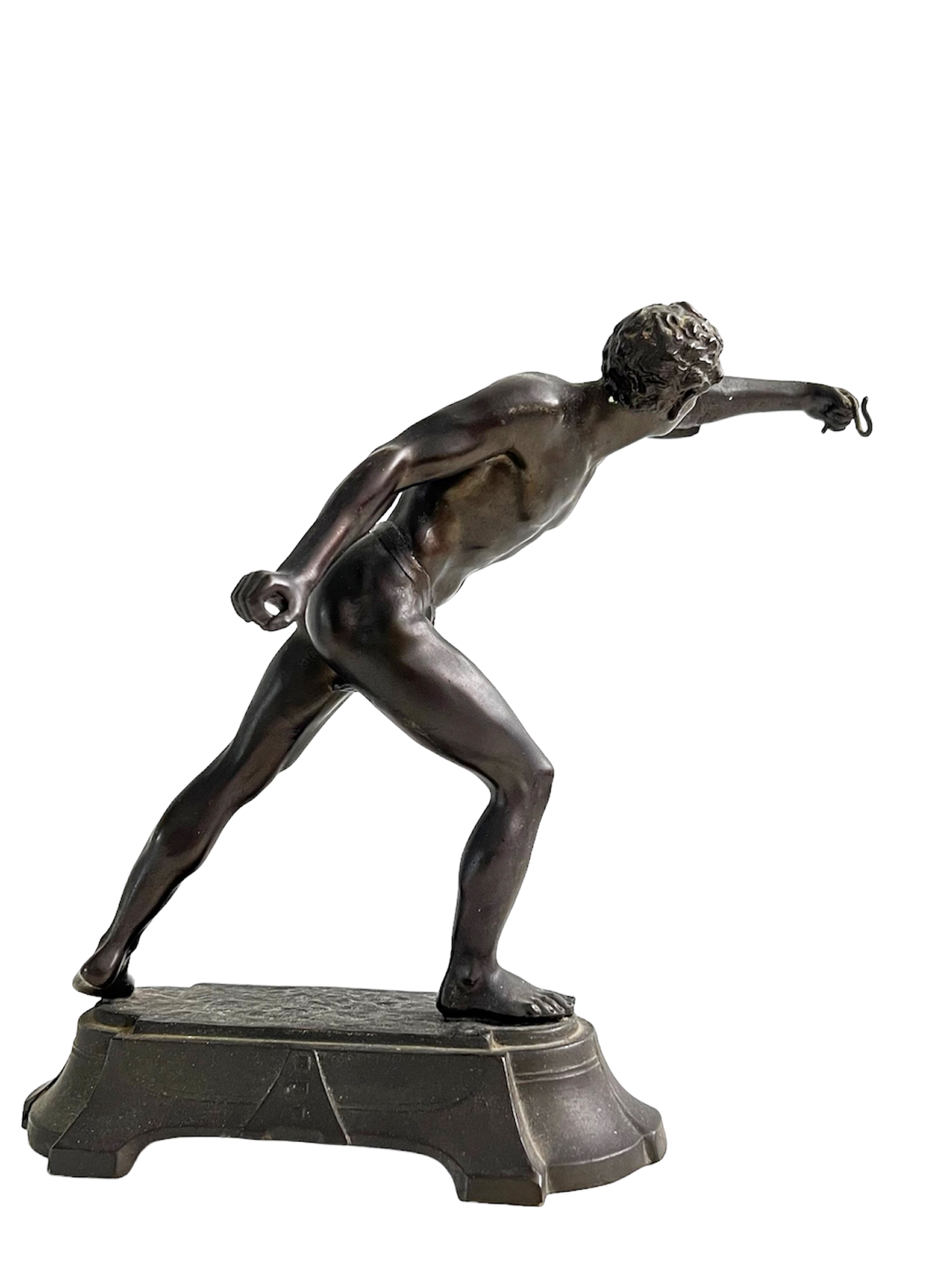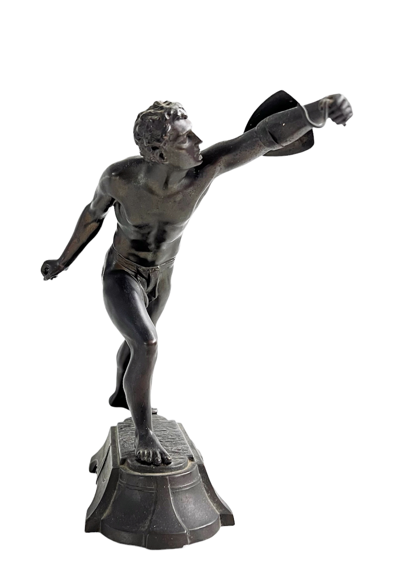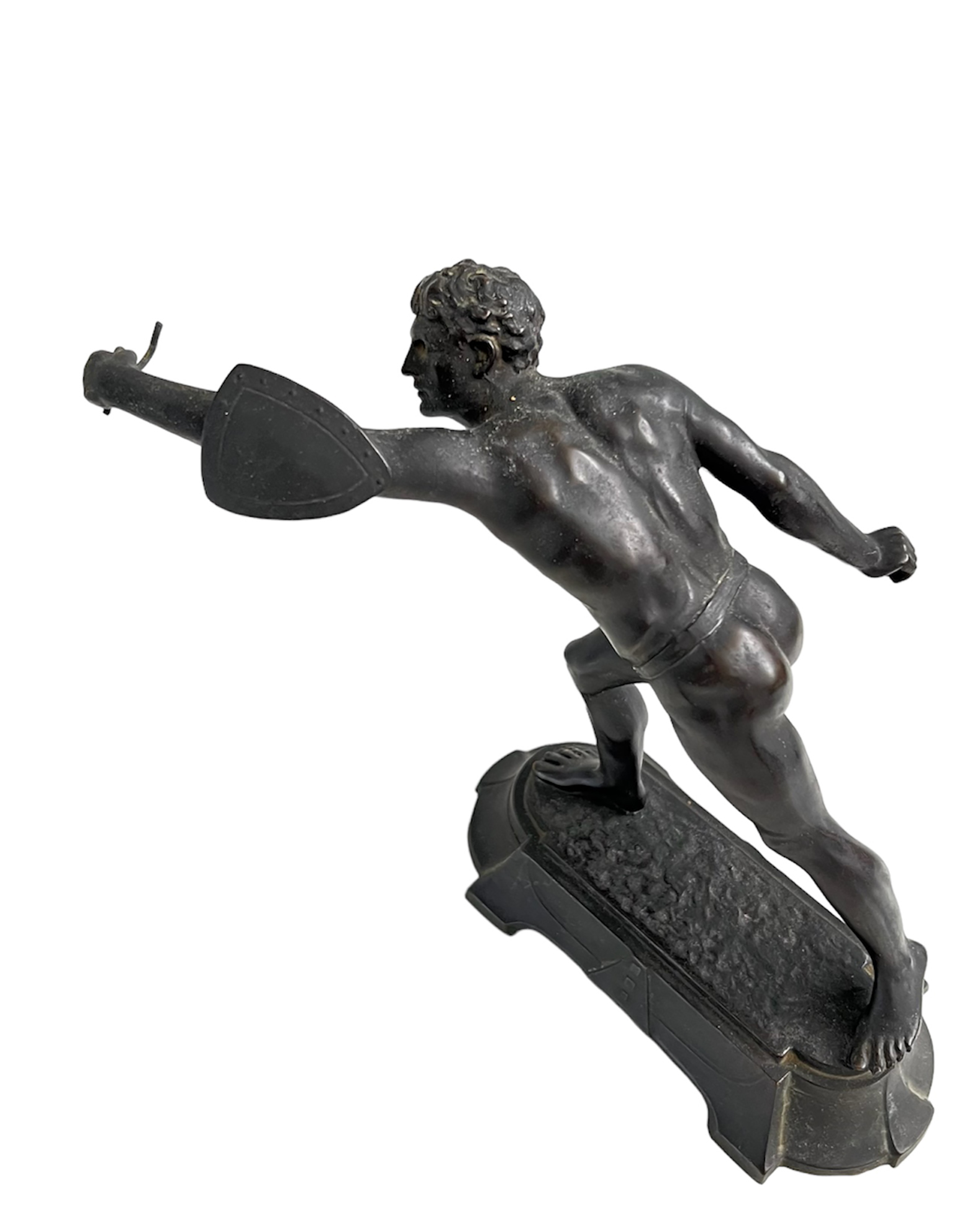 Scultura in bronzo raffigurante il "gladiatore borghese", riproduzione della statua rinvenuta nel primo decennio del XVII secolo durante gli scavi commissionati dal cardinale Scipione Borghese nei pressi di Porto d'Anzio.