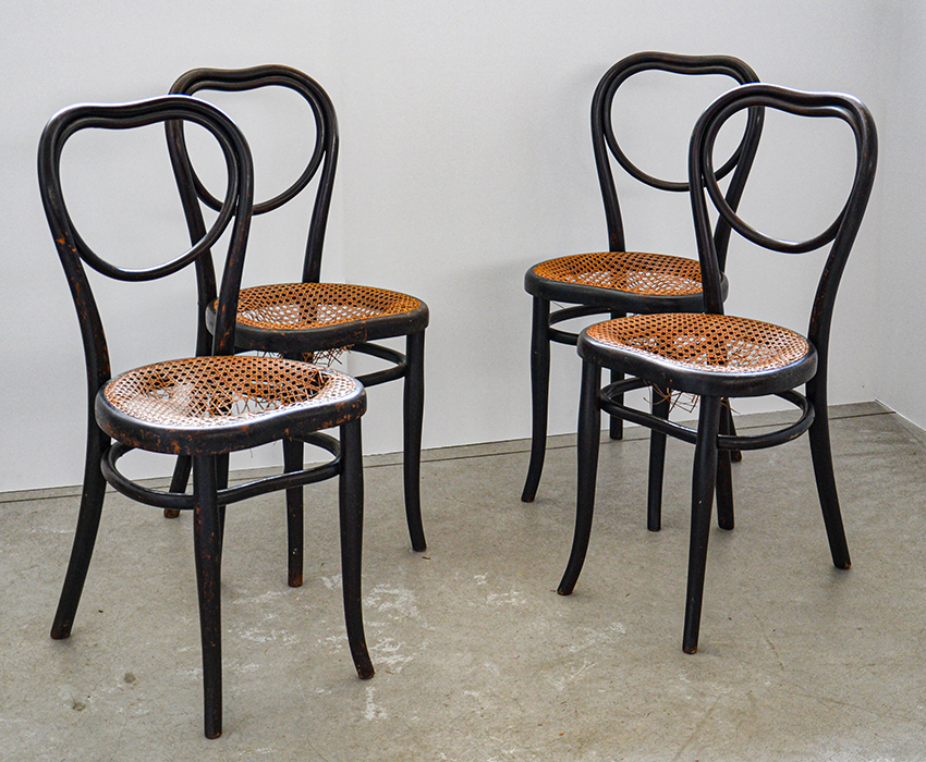 Lotto composto da n° 4 sedie Thonet mod. 28 caraterizzate dallo schienale e dalla seduta a forma di cuore, definite sedie da musicista